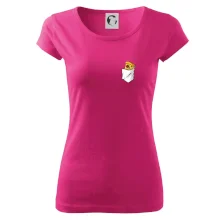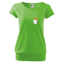 Trendové dámske tričko s veľmi krátkym rukávom, voľnejšieho strihu, v dolnom kraji všité do širokého lemu. Okrúhly priekrčník s úzkym lemom zo zhodného materiálu.