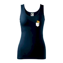 Ramená spevnené všitým prúžkom. Tričko siaha do hĺbky bokov. Silikónová úprava zabezpečuje mäkký a splývavý omak.