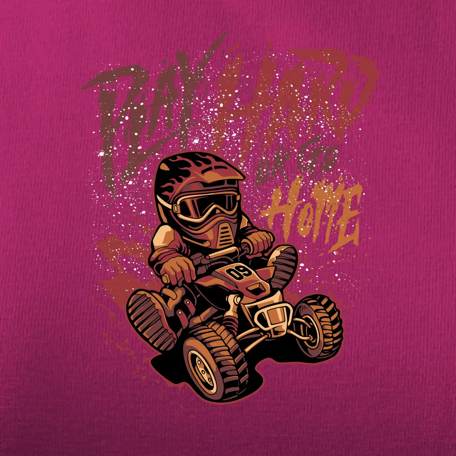 Tričko pre motoristu, na ktorom je kreslená off road štvorkolka s nápisom "Play Hard or Go Home". Tričko so štvorkolkou by mal mať každý správny off-road motorista. Tričko so štvorkolkou je vhodný darček pre motoristu, pre ktorého je jazda na štvorkolke ten pravý adrenalín.