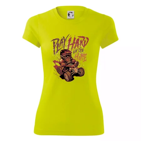 Tričko pre motoristu, na ktorom je kreslená off road štvorkolka s nápisom "Play Hard or Go Home". Tričko so štvorkolkou by mal mať každý správny off-road motorista. Tričko so štvorkolkou je vhodný darček pre motoristu, pre ktorého je jazda na štvorkolke ten pravý adrenalín.
