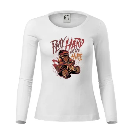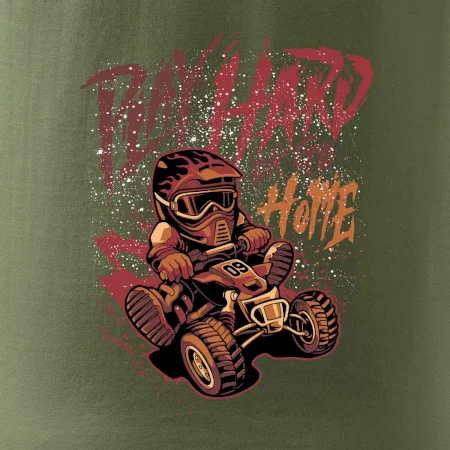 Tričko pre motoristu, na ktorom je kreslená off road štvorkolka s nápisom "Play Hard or Go Home". Tričko so štvorkolkou by mal mať každý správny off-road motorista. Tričko so štvorkolkou je vhodný darček pre motoristu, pre ktorého je jazda na štvorkolke ten pravý adrenalín.