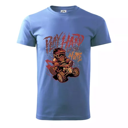 Tričko pre motoristu, na ktorom je kreslená off road štvorkolka s nápisom "Play Hard or Go Home". Tričko so štvorkolkou by mal mať každý správny off-road motorista. Tričko so štvorkolkou je vhodný darček pre motoristu, pre ktorého je jazda na štvorkolke ten pravý adrenalín.