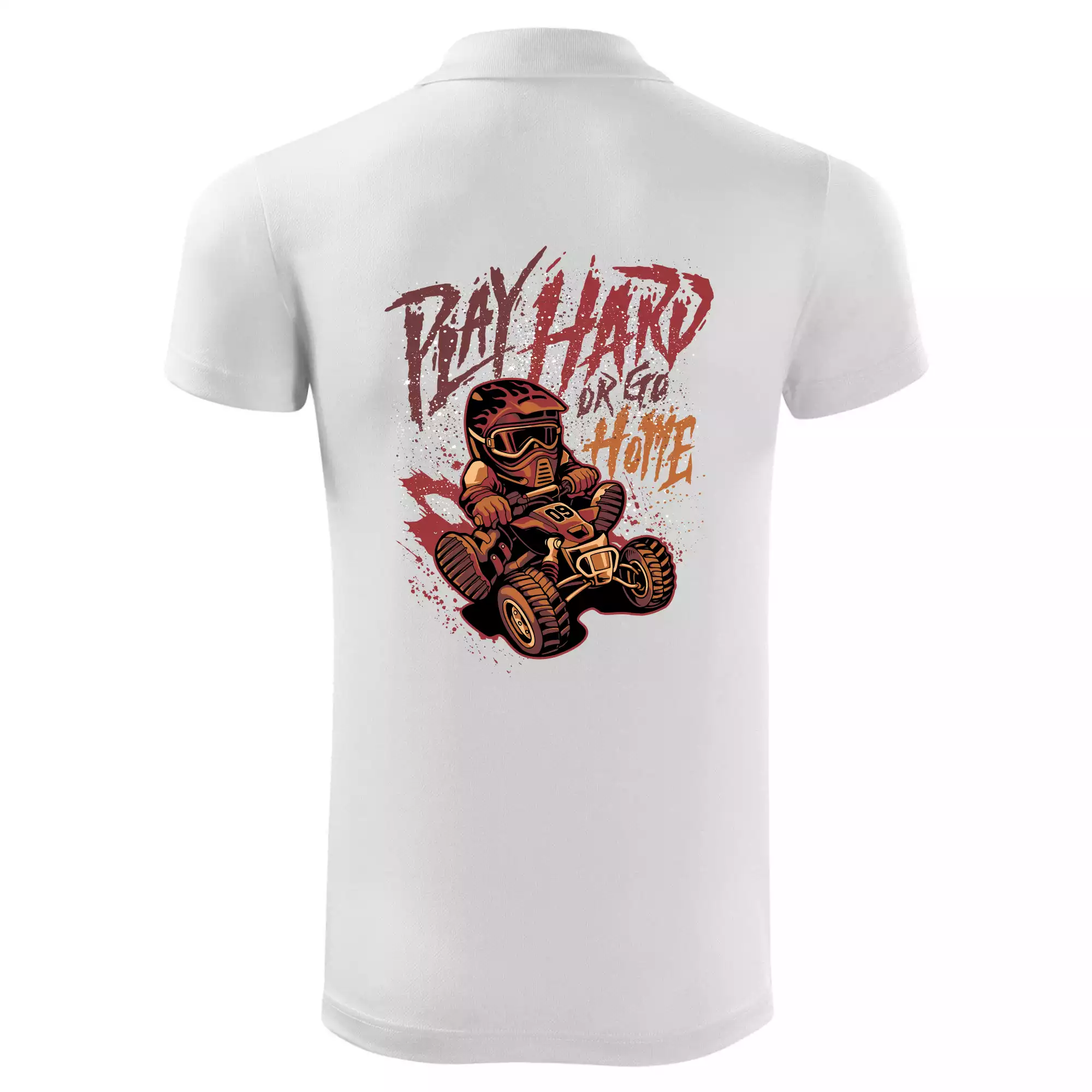 Tričko pre motoristu, na ktorom je kreslená off road štvorkolka s nápisom "Play Hard or Go Home". Tričko so štvorkolkou by mal mať každý správny off-road motorista. Tričko so štvorkolkou je vhodný darček pre motoristu, pre ktorého je jazda na štvorkolke ten pravý adrenalín.