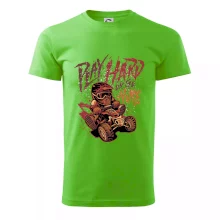 Tričko pre motoristu, na ktorom je kreslená off road štvorkolka s nápisom "Play Hard or Go Home". Tričko so štvorkolkou by mal mať každý správny off-road motorista. Tričko so štvorkolkou je vhodný darček pre motoristu, pre ktorého je jazda na štvorkolke ten pravý adrenalín.
