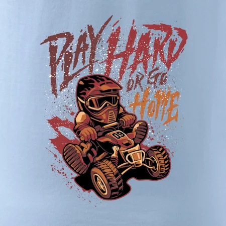 Tričko pre motoristu, na ktorom je kreslená off road štvorkolka s nápisom "Play Hard or Go Home". Tričko so štvorkolkou by mal mať každý správny off-road motorista. Tričko so štvorkolkou je vhodný darček pre motoristu, pre ktorého je jazda na štvorkolke ten pravý adrenalín.