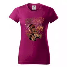 Trendové dámske tričko s veľmi krátkym rukávom, voľnejšieho strihu, v dolnom kraji všité do širokého lemu. Okrúhly priekrčník s úzkym lemom zo zhodného materiálu.