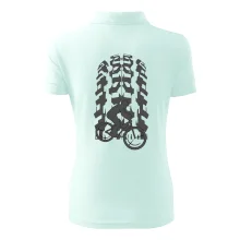Tričko pre cyklistu, na ktorom je otlačok pneumatiky a cyklista by mal mať každý správny športovec cyklista. Cyklistické tričko ukáže ako máte radi šport, najmä bicykel.