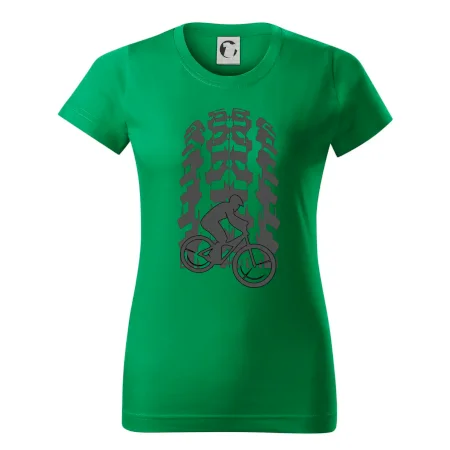 Tričko pre cyklistu, na ktorom je otlačok pneumatiky a cyklista by mal mať každý správny športovec cyklista. Cyklistické tričko ukáže ako máte radi šport, najmä bicykel.