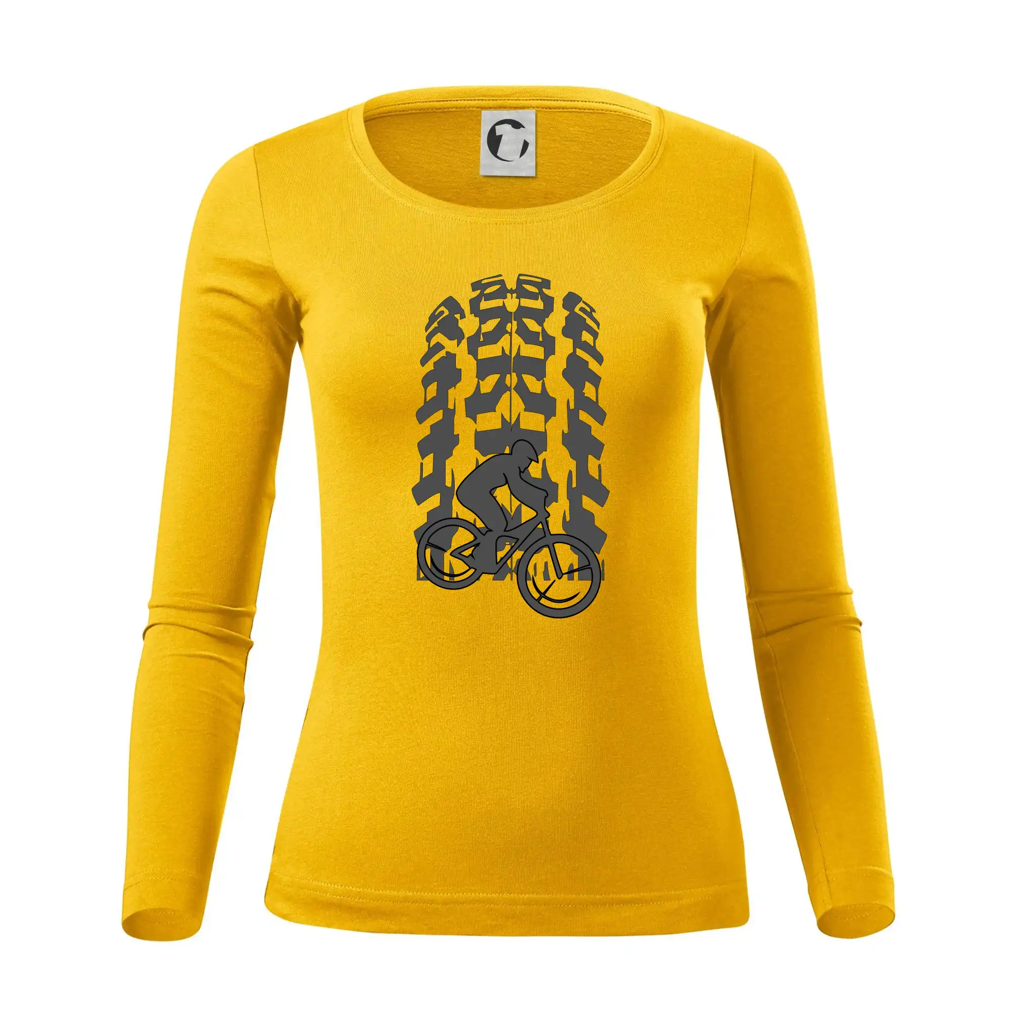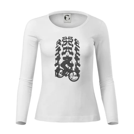 Tričko pre cyklistu, na ktorom je otlačok pneumatiky a cyklista by mal mať každý správny športovec cyklista. Cyklistické tričko ukáže ako máte radi šport, najmä bicykel.