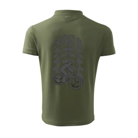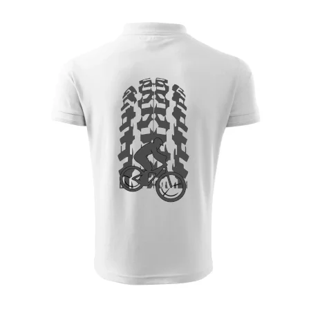 Tričko pre cyklistu, na ktorom je otlačok pneumatiky a cyklista by mal mať každý správny športovec cyklista. Cyklistické tričko ukáže ako máte radi šport, najmä bicykel.