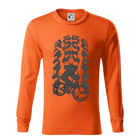 Tričko pre cyklistu, na ktorom je otlačok pneumatiky a cyklista by mal mať každý správny športovec cyklista. Cyklistické tričko ukáže ako máte radi šport, najmä bicykel.