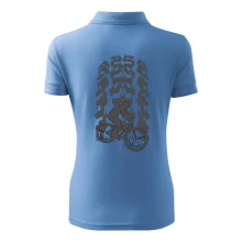 Tričko pre cyklistu, na ktorom je otlačok pneumatiky a cyklista by mal mať každý správny športovec cyklista. Cyklistické tričko ukáže ako máte radi šport, najmä bicykel.