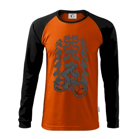 Tričko pre cyklistu, na ktorom je otlačok pneumatiky a cyklista by mal mať každý správny športovec cyklista. Cyklistické tričko ukáže ako máte radi šport, najmä bicykel.