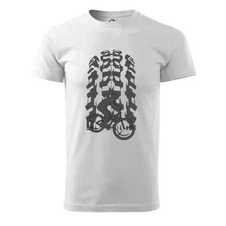 Tričko pre cyklistu, na ktorom je otlačok pneumatiky a cyklista by mal mať každý správny športovec cyklista. Cyklistické tričko ukáže ako máte radi šport, najmä bicykel.