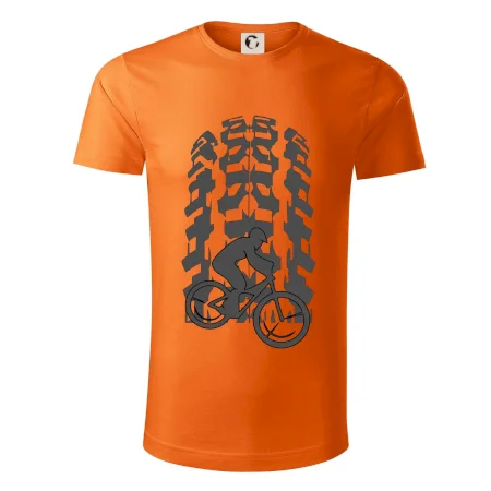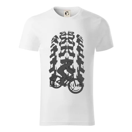 Tričko pre cyklistu, na ktorom je otlačok pneumatiky a cyklista by mal mať každý správny športovec cyklista. Cyklistické tričko ukáže ako máte radi šport, najmä bicykel.