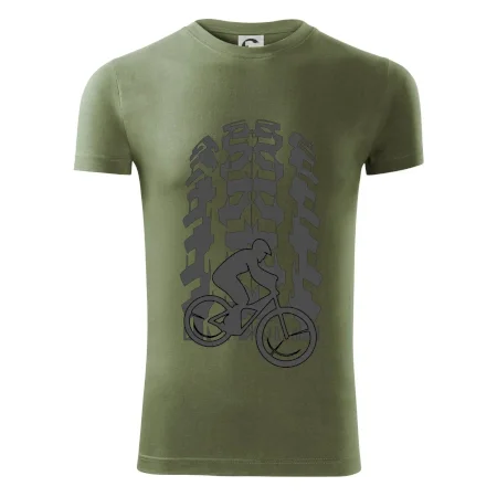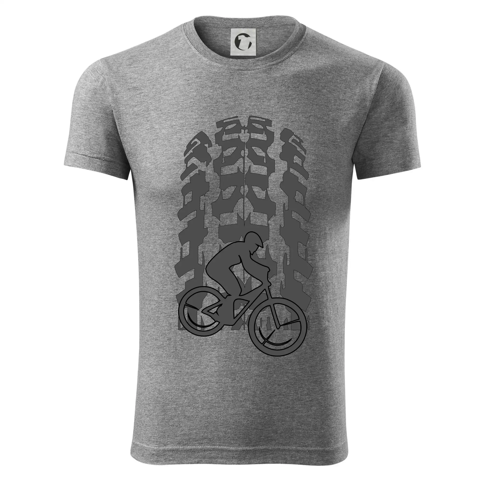 Tričko pre cyklistu, na ktorom je otlačok pneumatiky a cyklista by mal mať každý správny športovec cyklista. Cyklistické tričko ukáže ako máte radi šport, najmä bicykel.