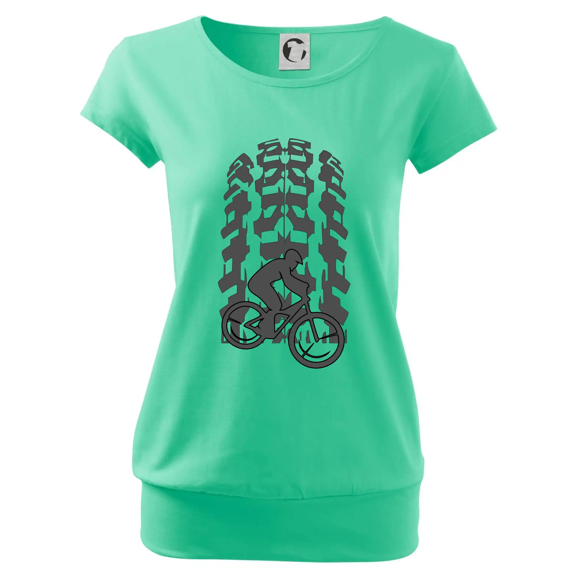 Tričko pre cyklistu, na ktorom je otlačok pneumatiky a cyklista by mal mať každý správny športovec cyklista. Cyklistické tričko ukáže ako máte radi šport, najmä bicykel.