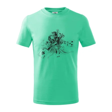 Detské tričko strednej gramáže s bočnými švami. Úzky priekrčník s prídavkom 5% elastanu. Vnútorná časť zadného priekrčníka začistená tkanou páskou. Spevnený ramenný šev.