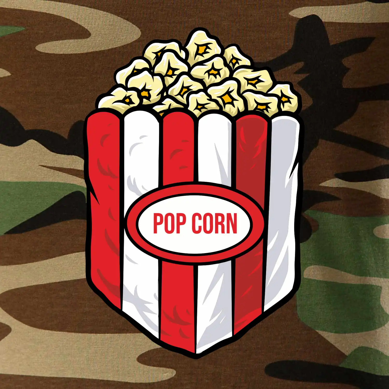 Tričko strednej gramáže vo farbách camouflage. Strih s bočnými švami. Lem priekrčníku z rebrového úpletu s prídavkom 5% elastanu. Vnútorná časť zadného priekrčníka začistená páskou vo farbe camouflage.