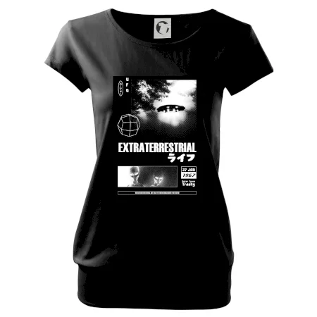 Trendové dámske tričko s veľmi krátkym rukávom, voľnejšieho strihu, v dolnom kraji všité do širokého lemu. Okrúhly priekrčník s úzkym lemom zo zhodného materiálu.