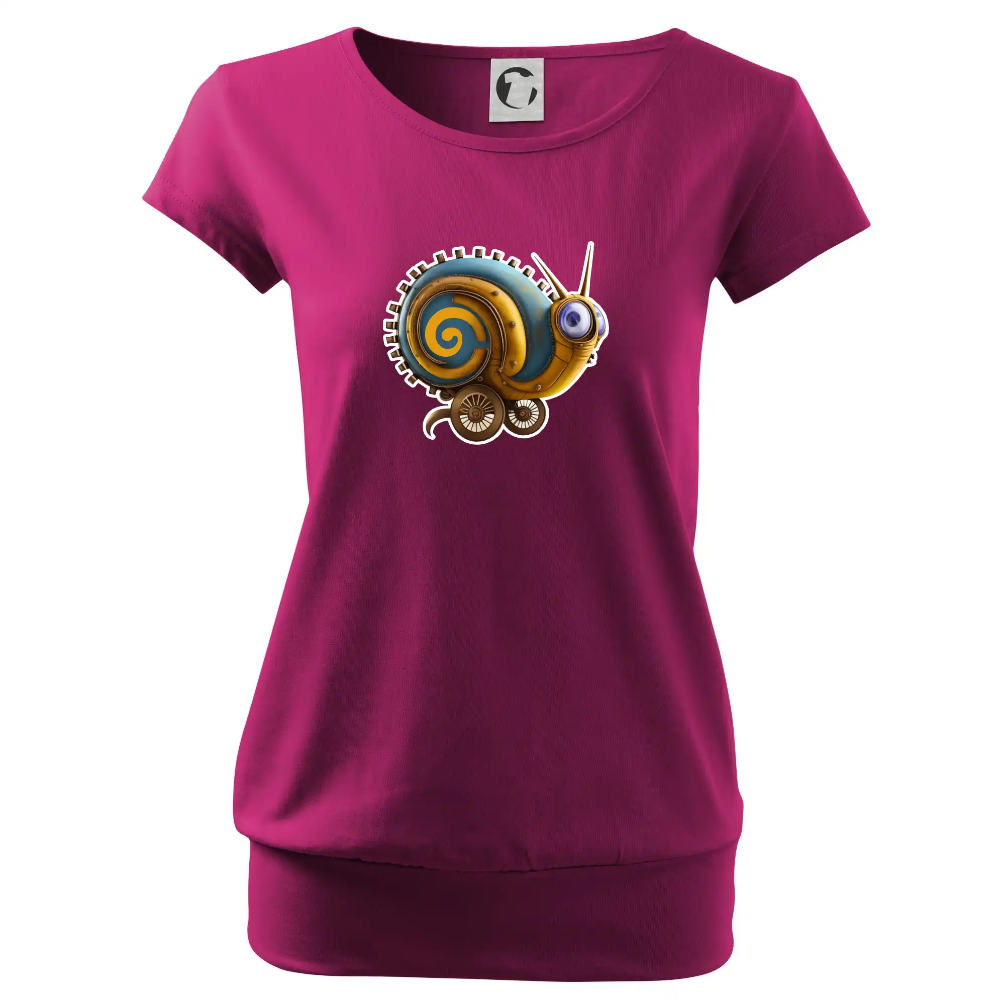 Trendové dámske tričko s veľmi krátkym rukávom, voľnejšieho strihu, v dolnom kraji všité do širokého lemu. Okrúhly priekrčník s úzkym lemom zo zhodného materiálu.