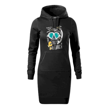 Dámske mikinové šaty MALFINI Snap 419 sú ideálnou voľbou pre ženy, ktoré hľadajú pohodlný a štýlový kúsok na voľný čas alebo každodenné nosenie. Ľahko vypasovaný strih s bočnými švami podčiarkuje ženskú siluetu, zatiaľ čo kapucňa s podšívkou a sťahovacou šnúrkou dodáva ležérny vzhľad. Šaty majú dĺžku nad kolená a sú vybavené našitým vreckom v štýle „klokanky“. Materiál je mäkký a príjemný na dotyk grâce à smesi bavlny a polyesteru s nepočesanou vnútornou stranou.
