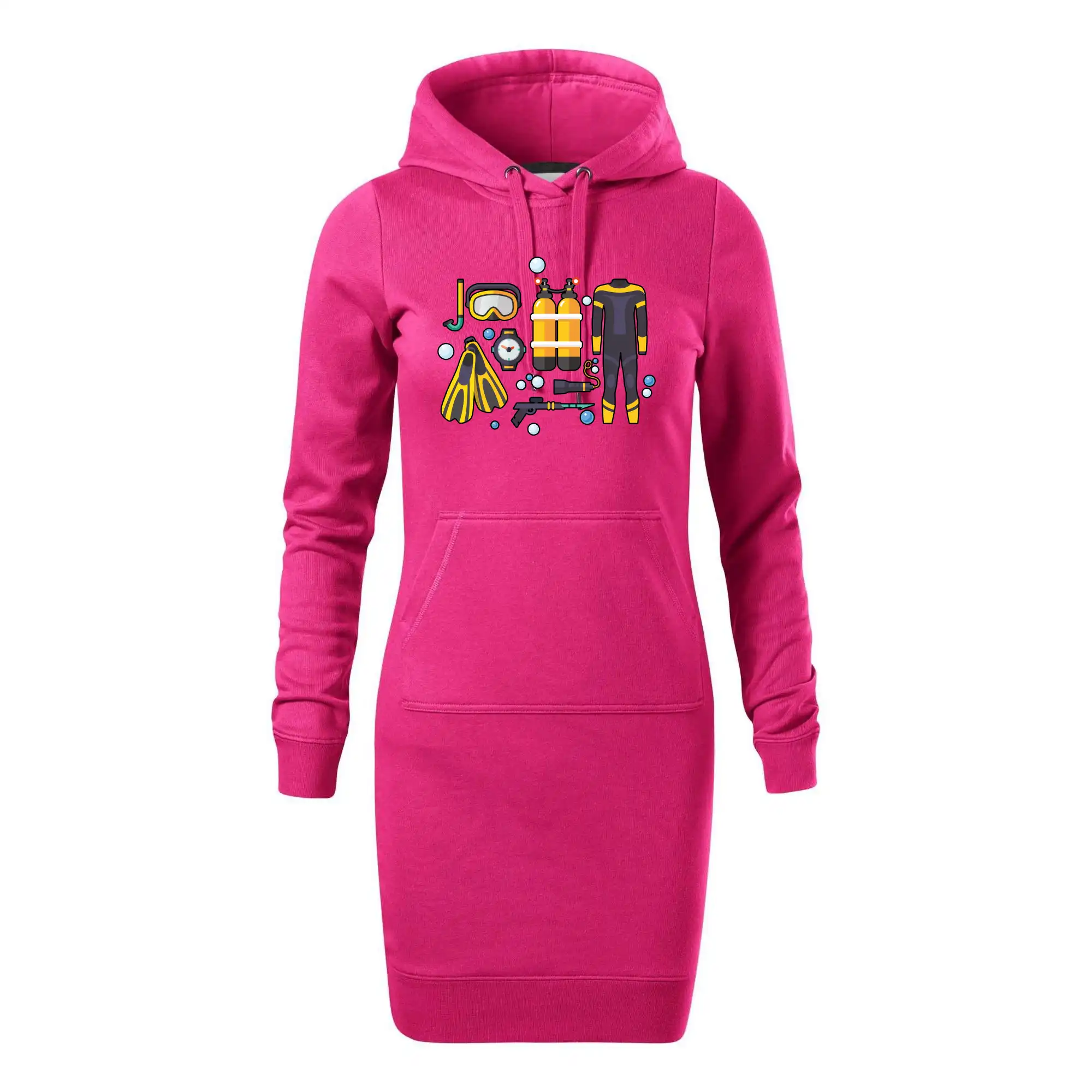 Dámske mikinové šaty MALFINI Snap 419 sú ideálnou voľbou pre ženy, ktoré hľadajú pohodlný a štýlový kúsok na voľný čas alebo každodenné nosenie. Ľahko vypasovaný strih s bočnými švami podčiarkuje ženskú siluetu, zatiaľ čo kapucňa s podšívkou a sťahovacou šnúrkou dodáva ležérny vzhľad.