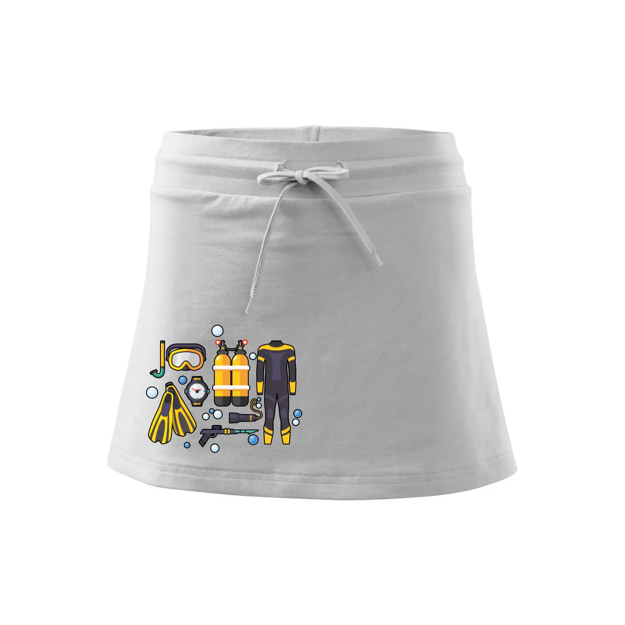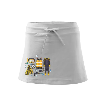 Dámska kraťasová sukňa MALFINI Two in One 604 je perfektnou kombináciou sukne a šortiek, ideálna na šport, voľný čas alebo ležérne nosenie. Vďaka prídavku elastanu si sukňa zachováva tvar a ponúka pohodlie pri pohybe. Krátky strih do tvaru „A“ a široký elastický pás so sťahovacou šnúrkou zabezpečujú voľnosť a prispôsobenie.