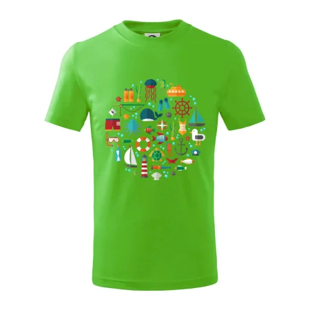 Detské tričko strednej gramáže s bočnými švami. Úzky priekrčník s prídavkom 5% elastanu. Vnútorná časť zadného priekrčníka začistená tkanou páskou. Spevnený ramenný šev.