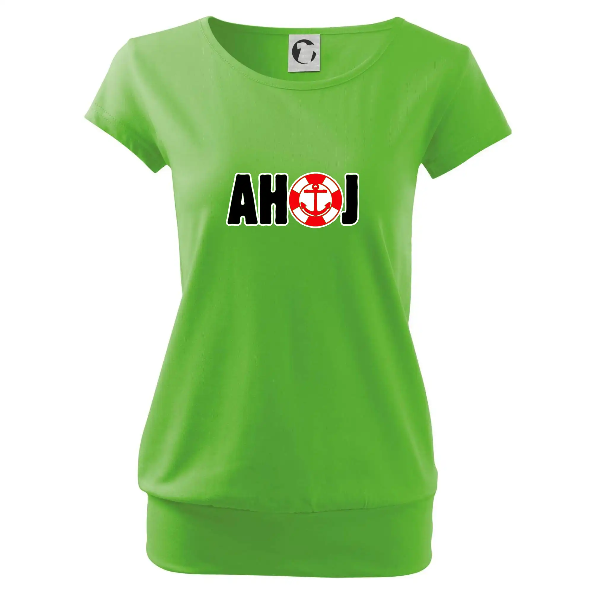 Trendové dámske tričko s veľmi krátkym rukávom, voľnejšieho strihu, v dolnom kraji všité do širokého lemu. Okrúhly priekrčník s úzkym lemom zo zhodného materiálu.