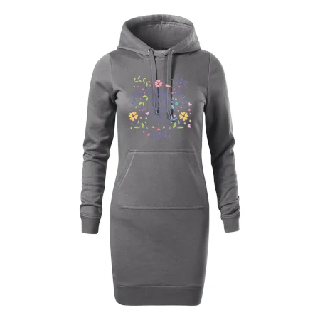 Dámske mikinové šaty MALFINI Snap 419 sú ideálnou voľbou pre ženy, ktoré hľadajú pohodlný a štýlový kúsok na voľný čas alebo každodenné nosenie. Ľahko vypasovaný strih s bočnými švami podčiarkuje ženskú siluetu, zatiaľ čo kapucňa s podšívkou a sťahovacou šnúrkou dodáva ležérny vzhľad. Šaty majú dĺžku nad kolená a sú vybavené našitým vreckom v štýle „klokanky“. Materiál je mäkký a príjemný na dotyk grâce à smesi bavlny a polyesteru s nepočesanou vnútornou stranou.