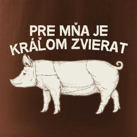 Hľadáš ideálny darček pre kamaráta, ktorý miluje grilovanie? To si tu správne! Tričko s nápisom "Pre mňa je kráľom zvierat prasa" ho poteší a určite sa zasmejete.