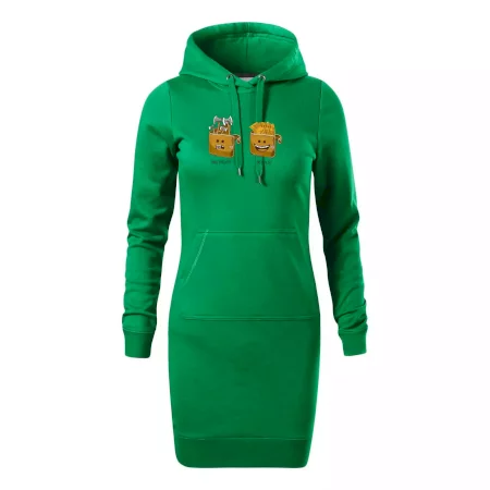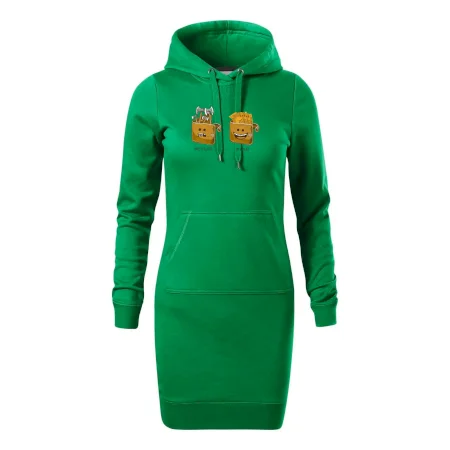 Dámske mikinové šaty MALFINI Snap 419 sú ideálnou voľbou pre ženy, ktoré hľadajú pohodlný a štýlový kúsok na voľný čas alebo každodenné nosenie. Ľahko vypasovaný strih s bočnými švami podčiarkuje ženskú siluetu, zatiaľ čo kapucňa s podšívkou a sťahovacou šnúrkou dodáva ležérny vzhľad. Šaty majú dĺžku nad kolená a sú vybavené našitým vreckom v štýle „klokanky“. Materiál je mäkký a príjemný na dotyk grâce à smesi bavlny a polyesteru s nepočesanou vnútornou stranou.