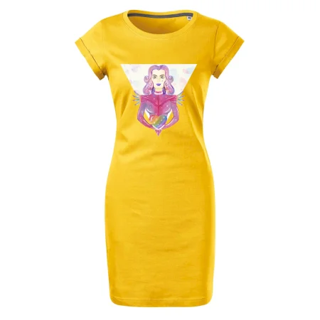 Tričkošaty MALFINI Freedom 178 sú ideálne pre ženy, ktoré hľadajú pohodlný a vzdušný kúsok na letné dni alebo voľnočasové aktivity. Voľný, ľahko tvarovaný strih s bočnými švami ponúka maximálne pohodlie a voľnosť pohybu. Dĺžka nad kolená a hlbší okrúhly výstrih dodávajú šatám svieži vzhľad, zatiaľ čo ohrnuté rukávy pripevnené šitím v štyroch bodoch pridávajú moderný detail. Kvalitný bavlnený materiál je mäkký a priedušný, s úzkym lemom výstrihu obsahujúcim elastan pre jednoduché obliekanie.