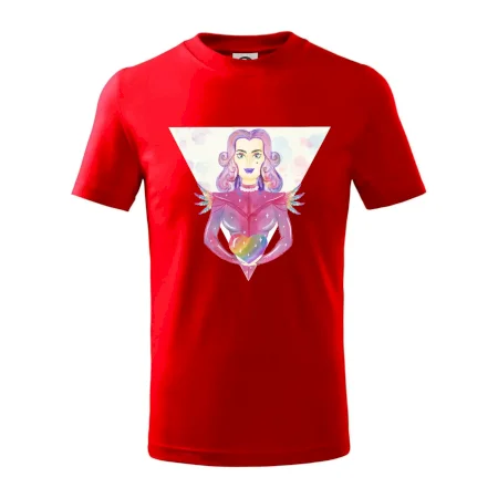 Detské tričko strednej gramáže s bočnými švami. Úzky priekrčník s prídavkom 5% elastanu. Vnútorná časť zadného priekrčníka začistená tkanou páskou. Spevnený ramenný šev.