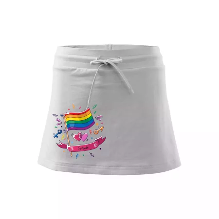 Dámska kraťasová sukňa MALFINI Two in One 604 je perfektnou kombináciou sukne a šortiek, ideálna na šport, voľný čas alebo ležérne nosenie. Vďaka prídavku elastanu si sukňa zachováva tvar a ponúka pohodlie pri pohybe. Krátky strih do tvaru „A“ a široký elastický pás so sťahovacou šnúrkou zabezpečujú voľnosť a prispôsobenie.