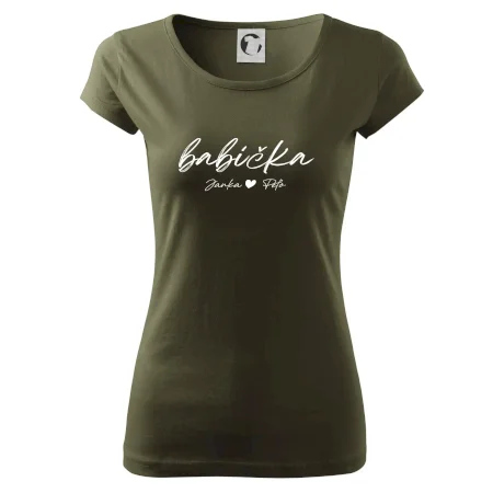 Babička Tričko s menami detí písacie písmo