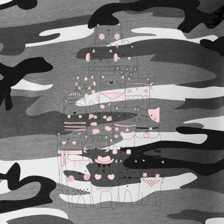 Tričko strednej gramáže vo farbách camouflage. Strih s bočnými švami. Lem priekrčníku z rebrového úpletu s prídavkom 5% elastanu. Vnútorná časť zadného priekrčníka začistená páskou vo farbe camouflage.