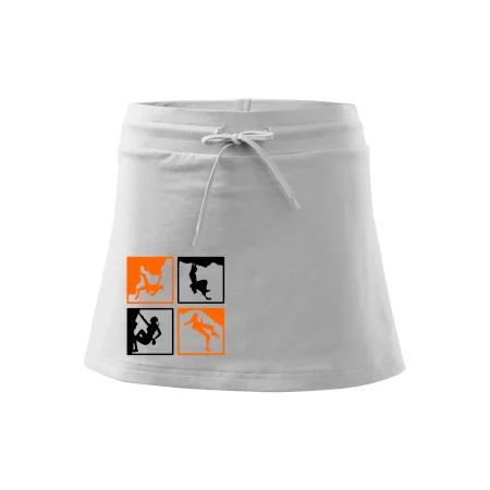 Dámska kraťasová sukňa MALFINI Two in One 604 je perfektnou kombináciou sukne a šortiek, ideálna na šport, voľný čas alebo ležérne nosenie. Vďaka prídavku elastanu si sukňa zachováva tvar a ponúka pohodlie pri pohybe. Krátky strih do tvaru „A“ a široký elastický pás so sťahovacou šnúrkou zabezpečujú voľnosť a prispôsobenie.