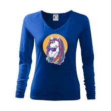 Tolerantnejšie priliehavý dámsky strih, ktorý je vhodný pre všetky typy postavy, ideálna dĺžka rukávov a konzervatívny výstrih zakončený rebrovaním, ktoré skvele drží tvar.