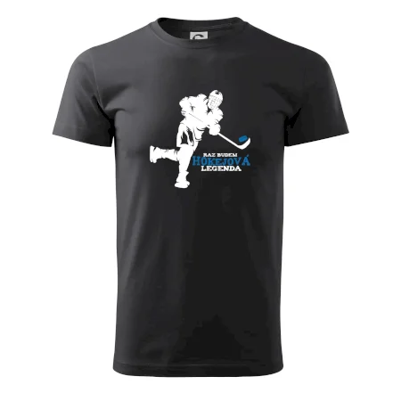 Tričko pre športovcov, ktorí majú radi hokej. Každý správny športovec hokejista, by mal mať tričko, kde je hokejista s nápisom !Raz budem hokejová legenda". Hokejové tričko je vhodný darček pre hokejistu. Ukáž, že máš rád šport a raz budeš hokejová legenda! Kúp si tričko pre hokejistu.