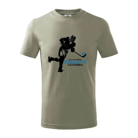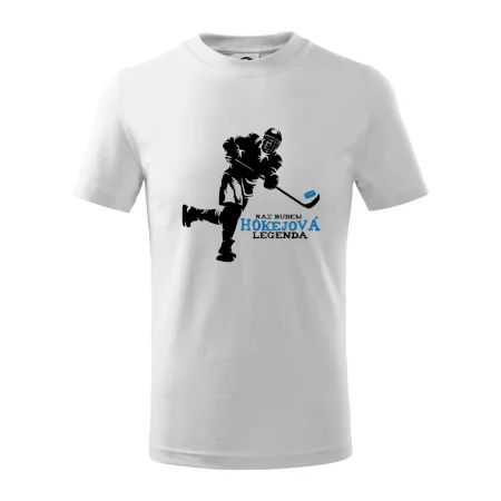Tričko pre športovcov, ktorí majú radi hokej. Každý správny športovec hokejista, by mal mať tričko, kde je hokejista s nápisom !Raz budem hokejová legenda". Hokejové tričko je vhodný darček pre hokejistu. Ukáž, že máš rád šport a raz budeš hokejová legenda! Kúp si tričko pre hokejistu.