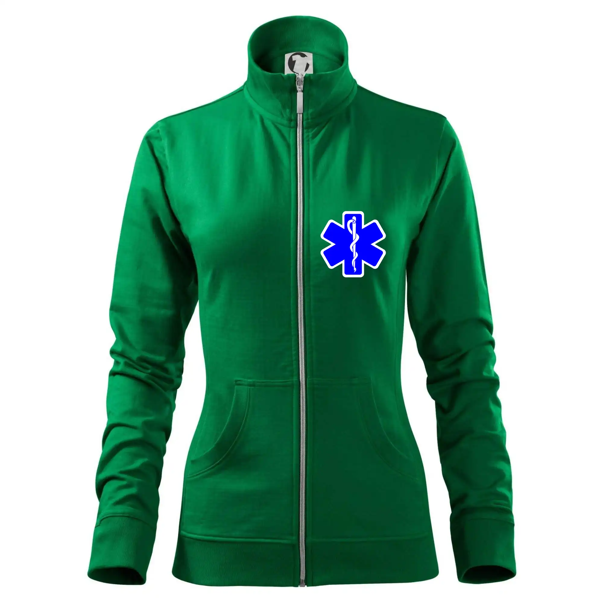 Dámska mikina MALFINI Viva 409 je navrhnutá pre ženy, ktoré ocenia spojenie praktickosti a moderného dizajnu. Polopriliehavý strih tvarovaný bočnými dielmi zvýrazňuje ženskú siluetu, zatiaľ čo celoprepínací strieborný zips a vyšší stojačik z rebrového úpletu dodávajú elegantný vzhľad. Mikina je vybavená dvoma našitými vreckami typu „klokanka“ a vďaka rýchloschnúcemu strečovému materiálu poskytuje pohodlie a zachováva tvar. Počesaná vnútorná strana zabezpečuje teplo a príjemný pocit pri nosení.