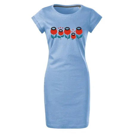 Tričkošaty MALFINI Freedom 178 sú ideálne pre ženy, ktoré hľadajú pohodlný a vzdušný kúsok na letné dni alebo voľnočasové aktivity. Voľný, ľahko tvarovaný strih s bočnými švami ponúka maximálne pohodlie a voľnosť pohybu. Dĺžka nad kolená a hlbší okrúhly výstrih dodávajú šatám svieži vzhľad, zatiaľ čo ohrnuté rukávy pripevnené šitím v štyroch bodoch pridávajú moderný detail. Kvalitný bavlnený materiál je mäkký a priedušný, s úzkym lemom výstrihu obsahujúcim elastan pre jednoduché obliekanie.