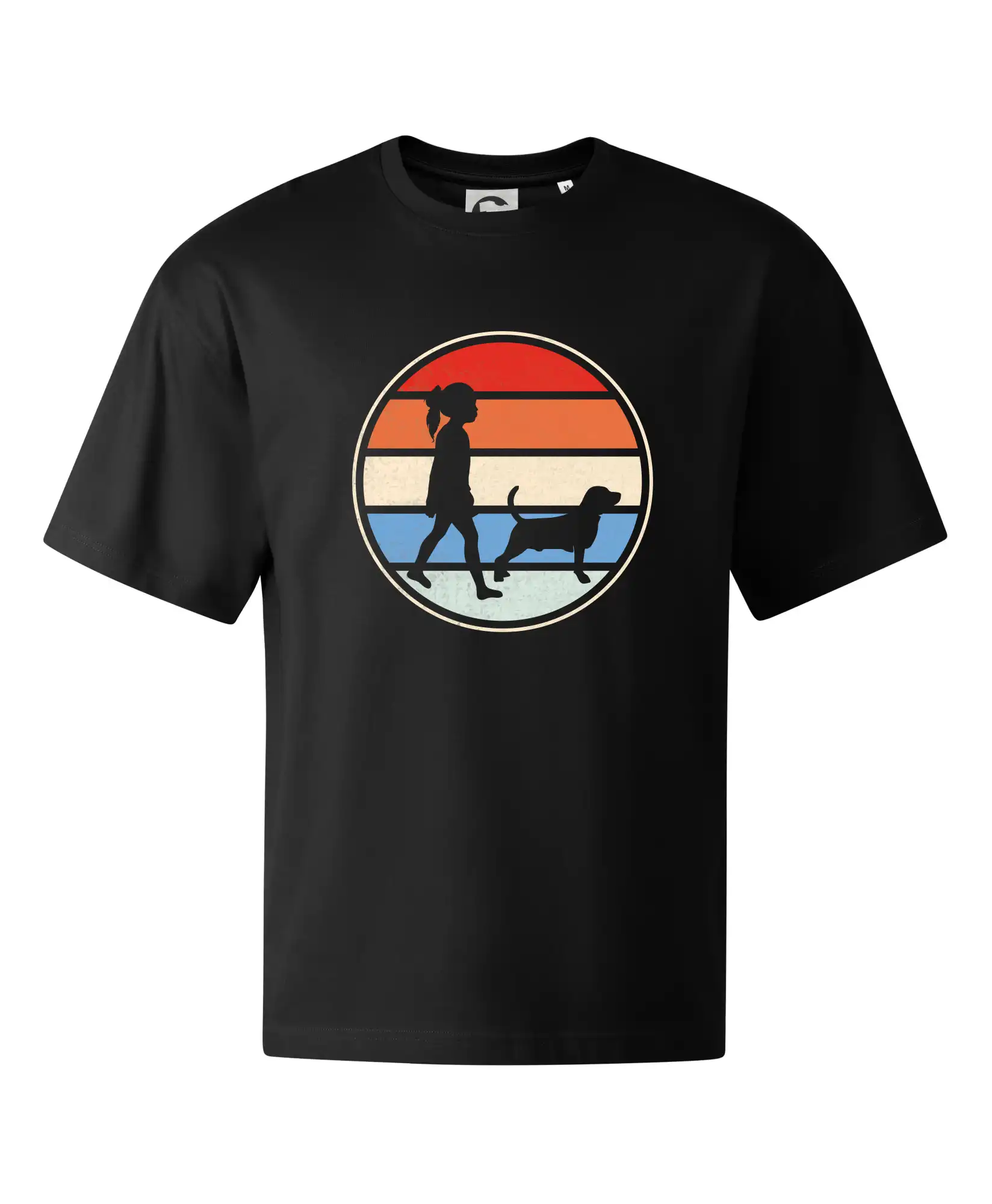 Retro kruh - dievča a pes na prechádzke