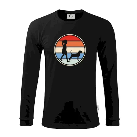 Retro kruh - dievča a pes na prechádzke