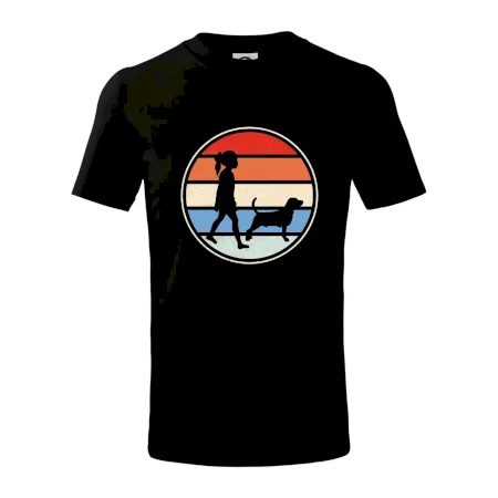 Retro kruh - dievča a pes na prechádzke