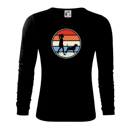 Retro kruh - dievča a pes na prechádzke