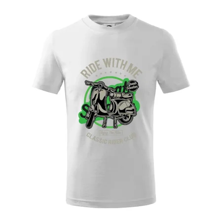 Detské tričko strednej gramáže s bočnými švami. Úzky priekrčník s prídavkom 5% elastanu. Vnútorná časť zadného priekrčníka začistená tkanou páskou. Spevnený ramenný šev.