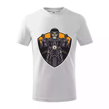 Detské tričko strednej gramáže s bočnými švami. Úzky priekrčník s prídavkom 5% elastanu. Vnútorná časť zadného priekrčníka začistená tkanou páskou. Spevnený ramenný šev.